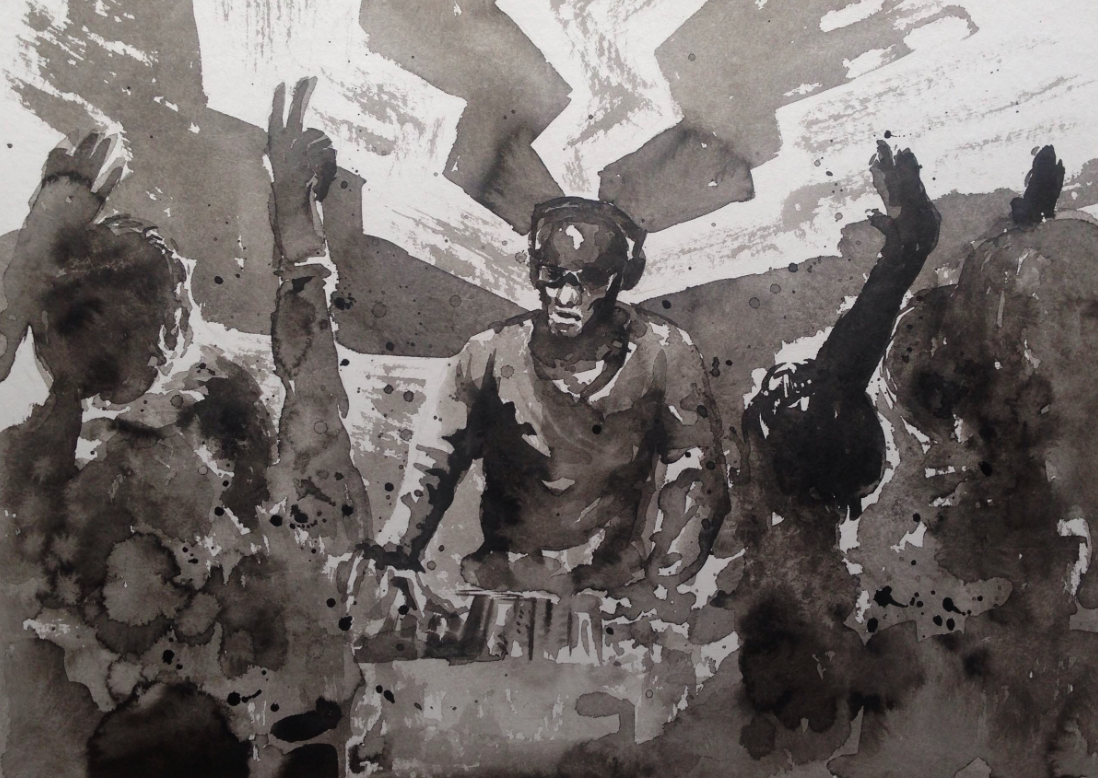 These portraits are an examination of the fusion between art and music. Each portrait is of a musician, and the process involves intensively listening to that person's music throughout the entire creation, while also trying to incorporate (what I know of) that person's personality into the portrait. Each of these musicians are someone that I have seen play live, which also helps to create a certain atmosphere; most likely a combination of the music and my own personal memory of the event. This portrait is of the techno DJ Kenny Larkin.