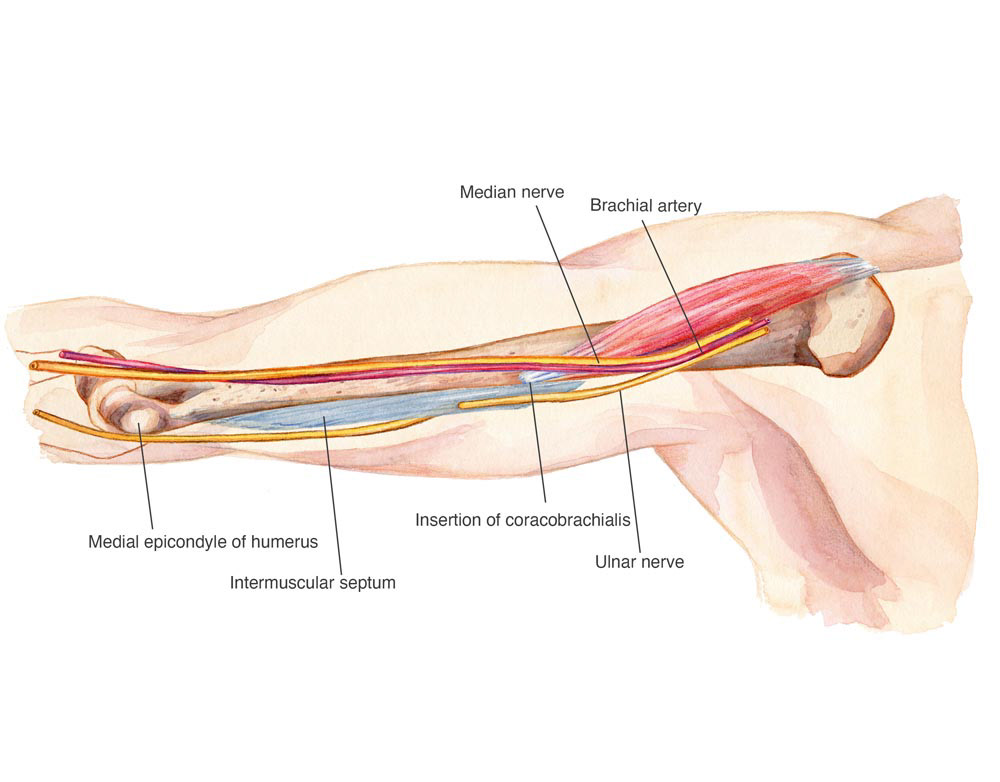 A series of illustrations for a Medical Journal, depicting an innovative cadaveric dissection of a humerus