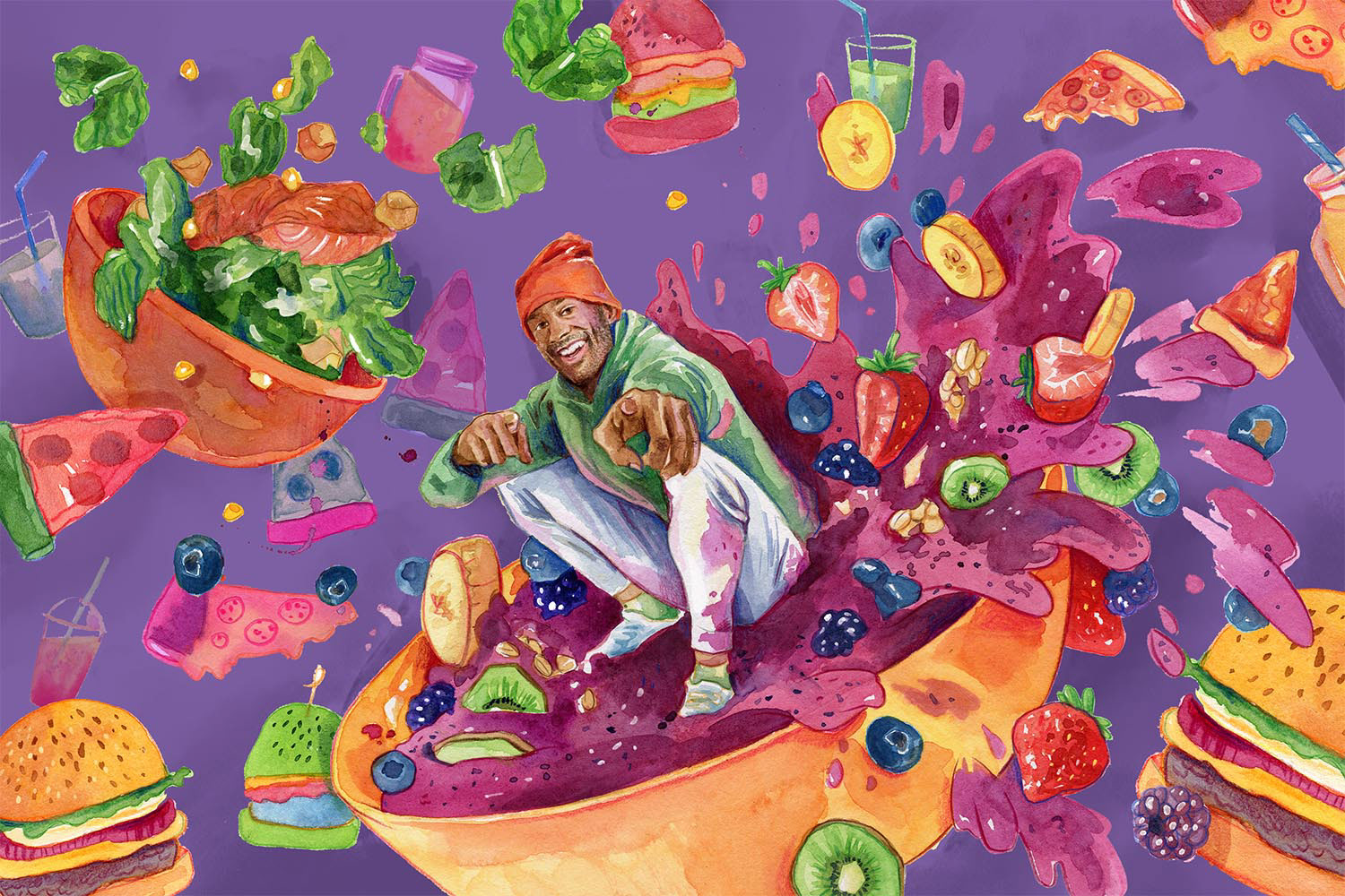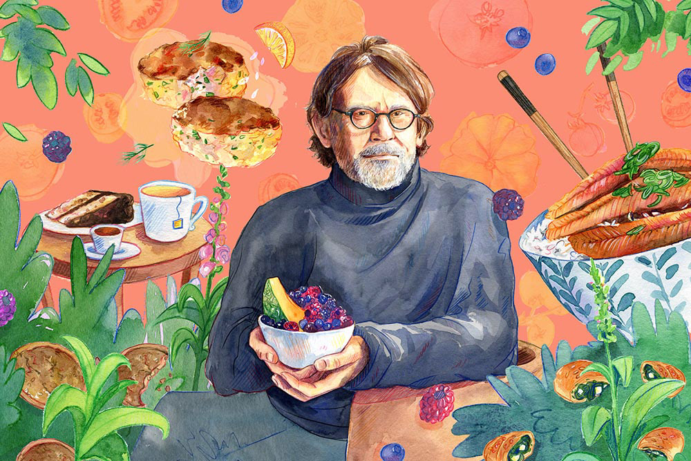 An ongoing portrait series for NY Mag, showcasing different personalities surrounded by their favourite foods.