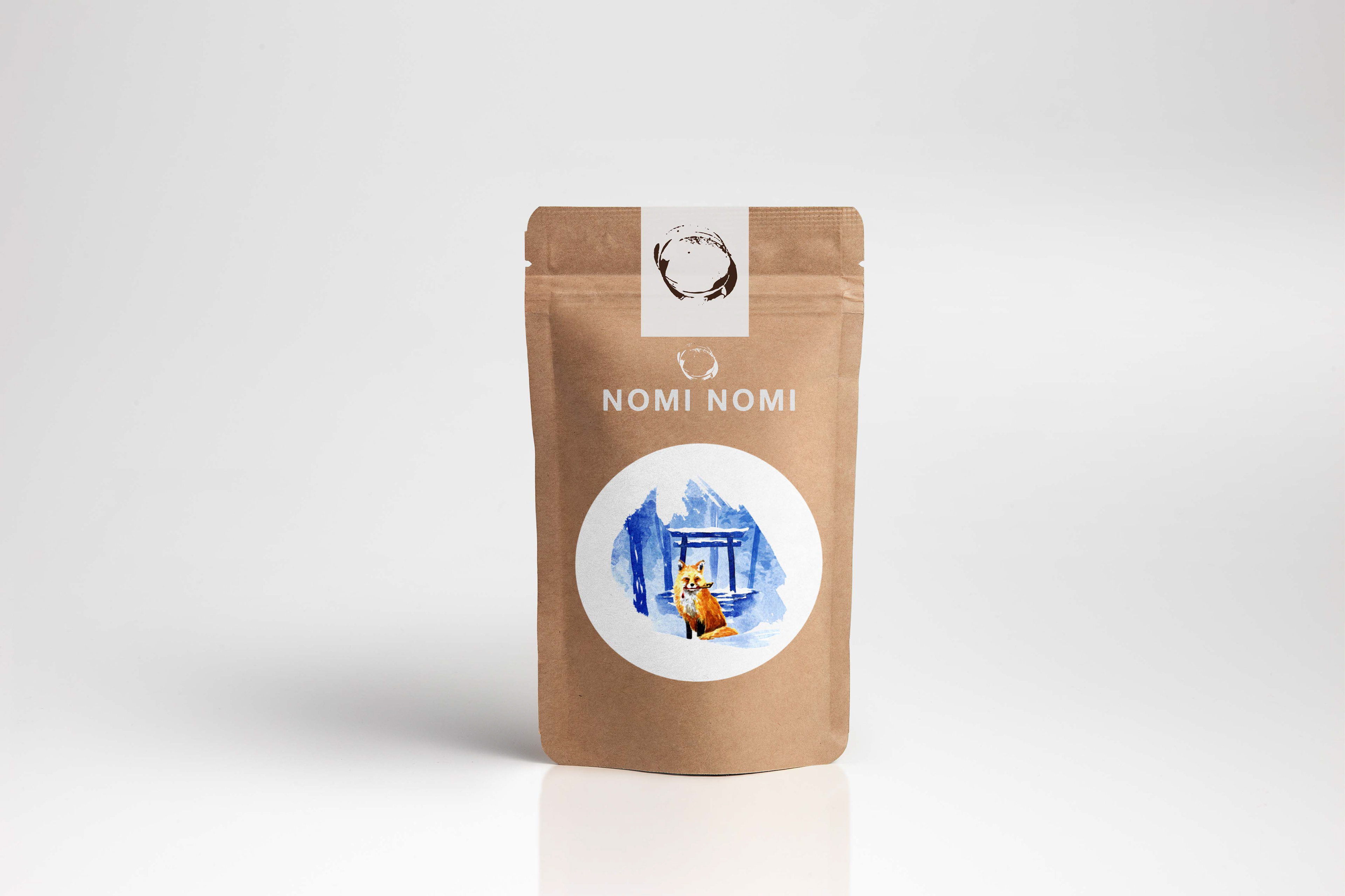 A series of 3 labels created for Nomi Nomi Matcha Tea Brand