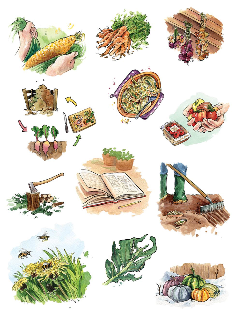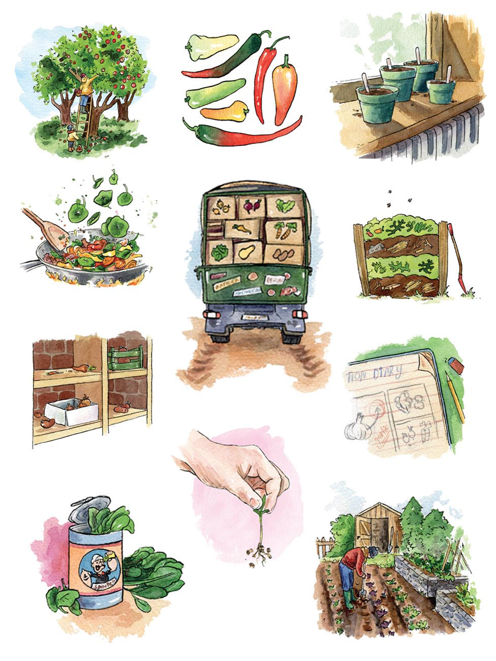 A selection of the 58 spot illustration from 'The GIY Diaries' (Gill Books, 2022)