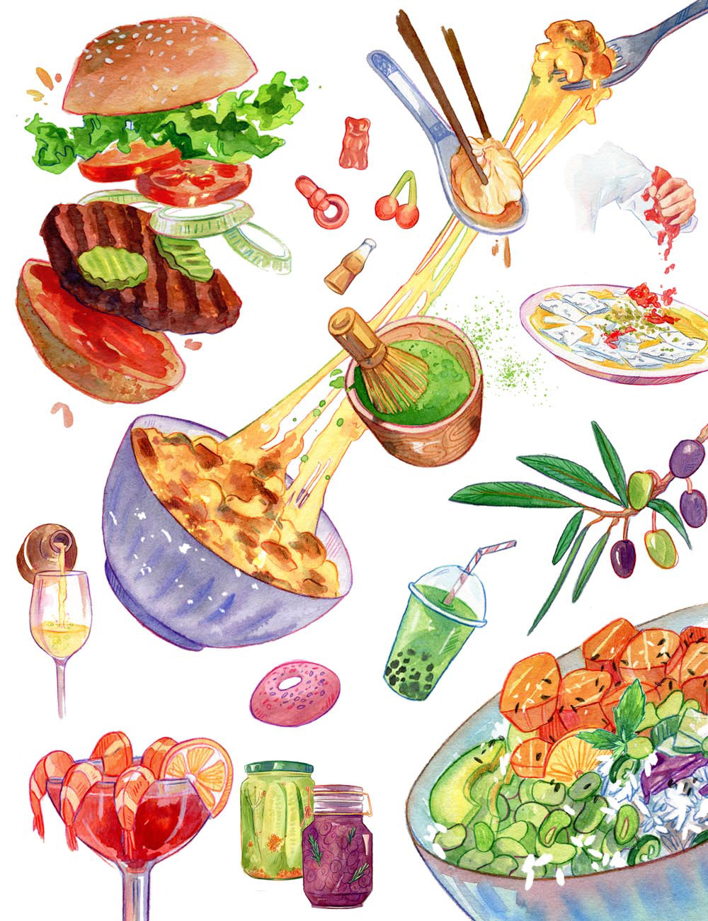 Editorial illustration for NY Mag's 'Grub Street Diet'