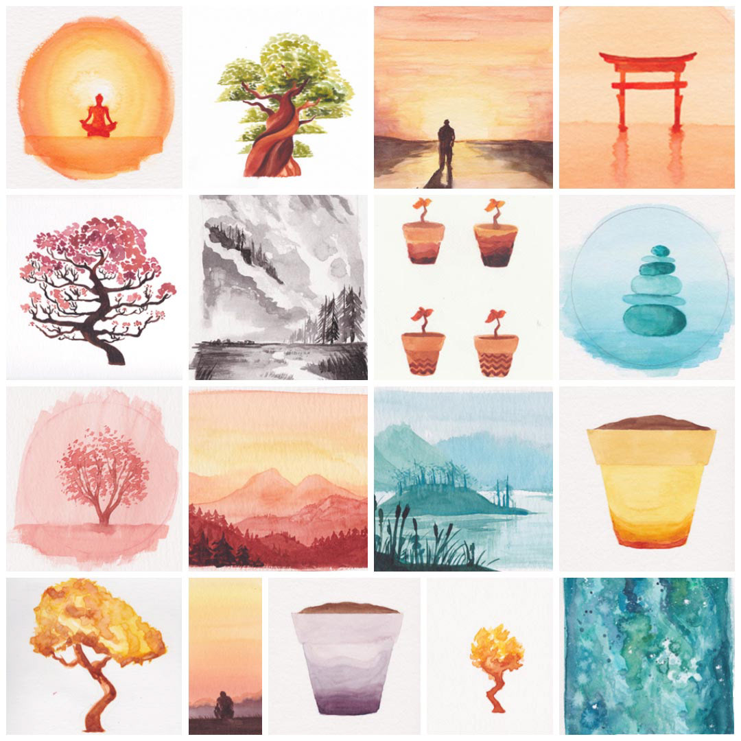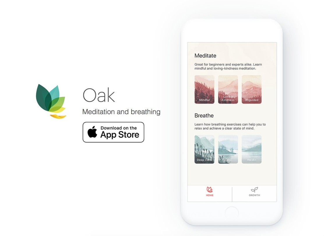 Fully-illustrated meditation app 'Oak Meditation'